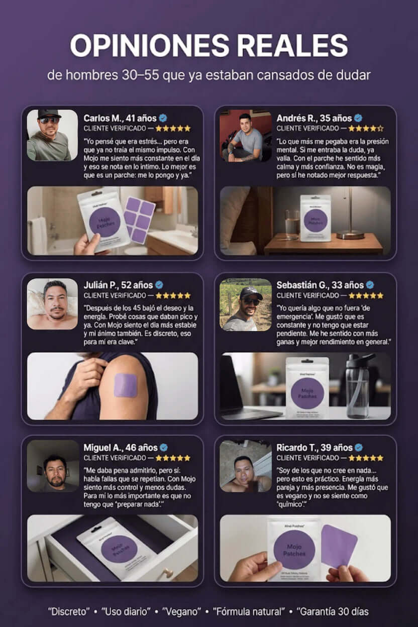 Después de unas semanas con los Parches Mojo, noté una mejora constante en mi libido, no un aumento repentino, sino un interés y una energía más constantes. Son fáciles de usar y sin efectos secundarios extraños.